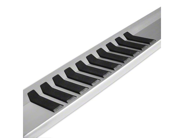 Description. Raptor Series 6 inch OEM Style Brushed Aluminum Slide Track Running Boards offer a full 6 inch step area and features slip resistant step treads. They offer a stylish look with their unique angled end caps and are offered in a modern brushed aluminum finish. They are constructed of anti-corrosion aircraft grade aluminum for long lasting durability and lightweight construction. All kits have a recommended weight rating of 400 lbs. Backed by a limited lifetime manufacturer warranty on the workmanship/structure and a 10 year limited manufacturer warranty on the brushed aluminum finish!
