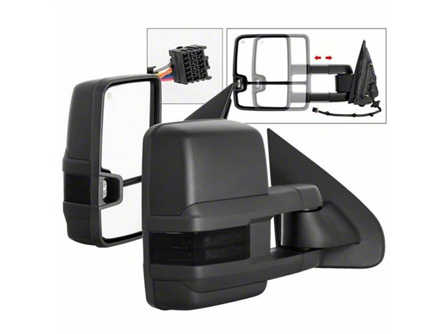 Upgrade Your Side Mirror. Severe issues could occur if your side mirror is shattered or disconnected from your vehicle. The Silverado 3500 G2 Powered Heated Telescoping Mirrors with Smoked LED Turn Signals replacement for both sides is a great solution. Along with smoked LED turn signals, this side mirror also features power heating. The mirror's textured finish and high-quality materials ensure that it will endure for a long time. It's an affordable option that will meet your needs and offer the high-quality functionality you need for most driving conditions.