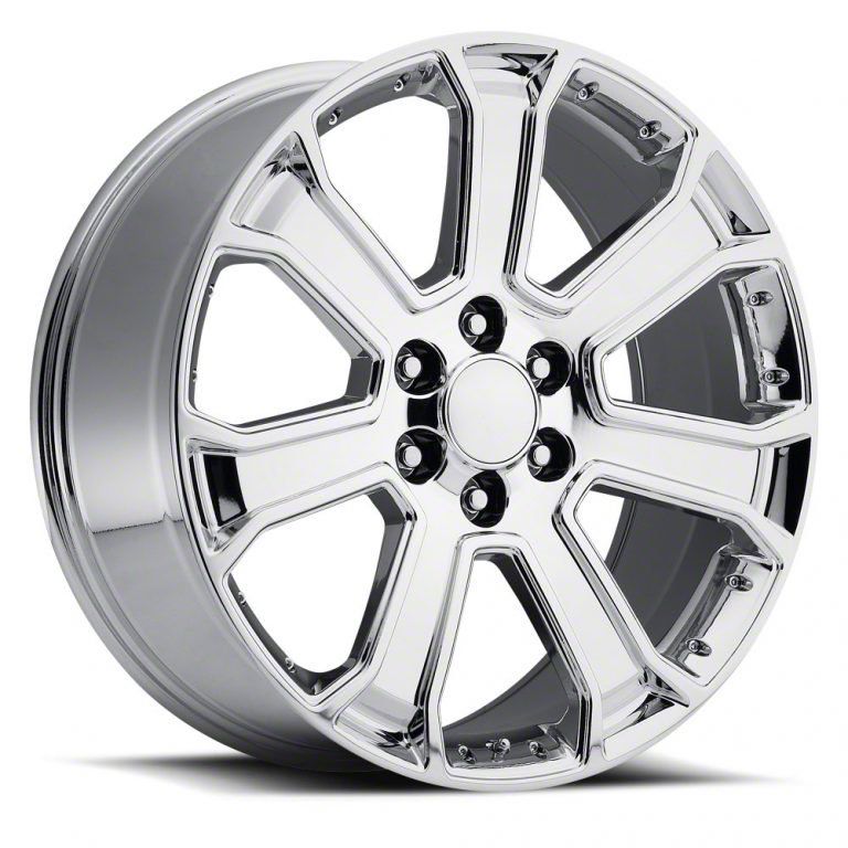Application. This Yukon Denali Replica Chrome 6-Lug Wheel; 22x9; 31mm Offset, with a backspace of 6.22 Inch, 158mm and bolt pattern of 6 x 139.7mm (6 x 5.5-Inch), ensures proper alignment and stability. It's designed to fit the 2007-2013 Silverado 1500 models, enhancing both the look and the overall driving experience. Sold individually.