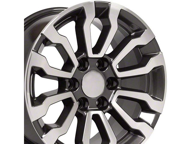 This 18x8.5 CV35 Gunmetal Machined 6-Lug Wheel is completed in a high-quality gunmetal finish with machined accents for a striking appearance. There's a durable clear coat to help protect against driving hazards.