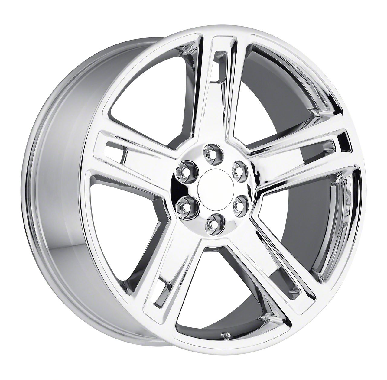Silverado Replica Chrome 6-Lug Wheel; 22x9; 24mm Offset The Silverado Replica Chrome 6-Lug Wheel showcases a blend of race-inspired aesthetics, ideal for those seeking a premium and robust appearance. Its design complements various vehicle styles, adding sophistication.