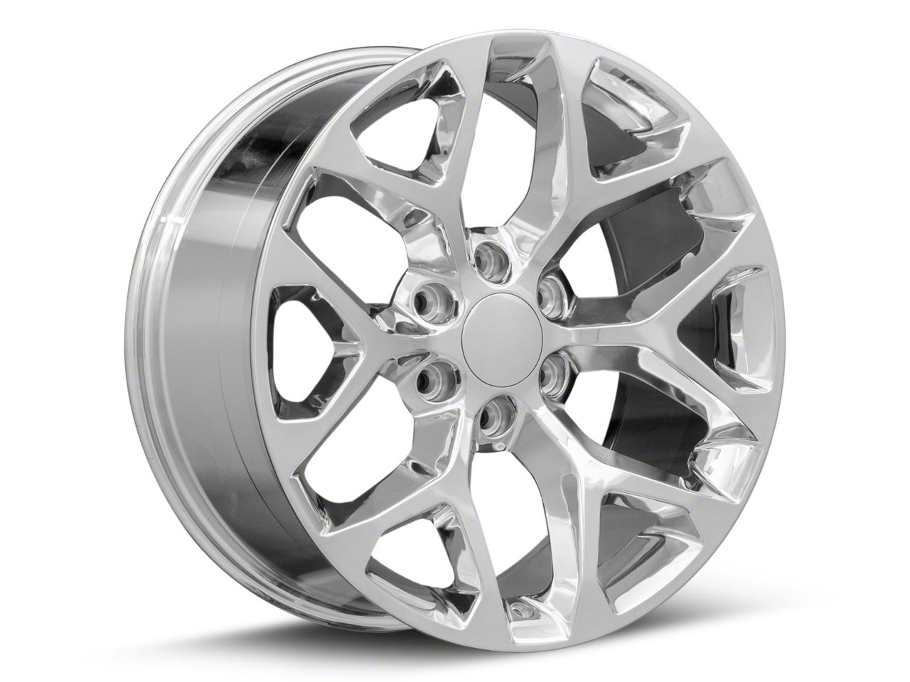 Chevy Snowflake Replica Chrome 6-Lug Wheel; 22x9 exudes an unmistakable elegance that complements any vehicle. Crafted by , this wheel embodies a blend of style and sophistication. Its chrome finish not only enhances its visual allure but also signifies its robust nature. Perfect for those who wish to make a statement on the road.