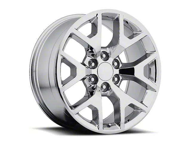 The 20x9 2014 Sierra Replica Chrome 6-Lug Wheel; ; 27mm Offsethas a chrome finish that is accomplished in a 3-step plating process that includes copper, nickel and chrome.