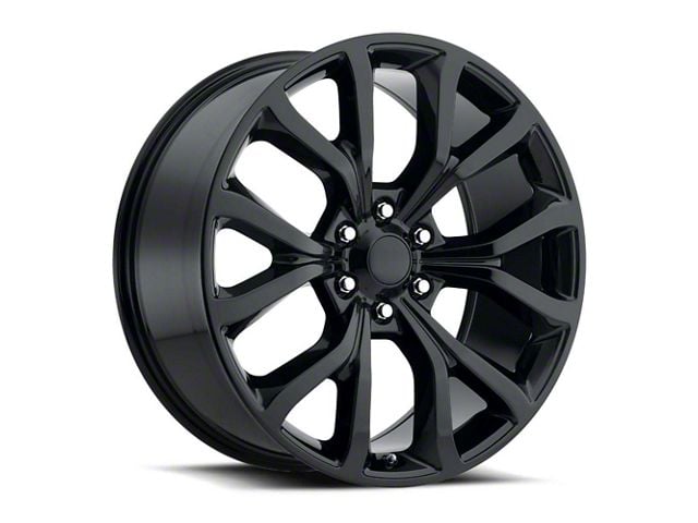 The 22x9.5 Expedition Platinum Replica Gloss Black 6-Lug Wheel; 22x9.5; 44mm Offset is completed in a high-quality gloss black finish, which will be sure to turn heads. For added durability and appearance, there is a durable clear coat that withstands the rigors of the road.