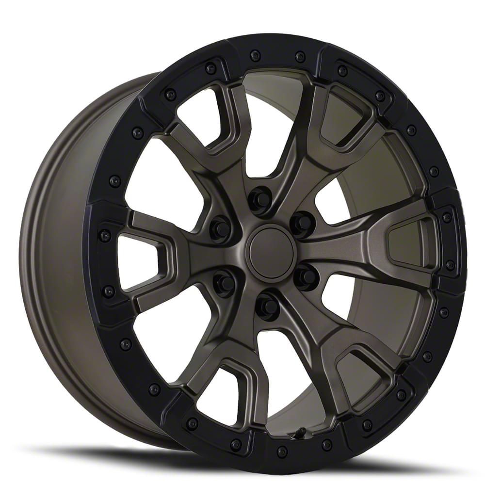 Raptor Style Satin Bronze with Satin Black Ring 6-Lug Wheel; 20x9; 20mm Offset exudes a captivating aesthetic appeal that seamlessly complements various vehicle styles. The craftsmanship of ensures a robust and premium feel, making it a standout choice for discerning drivers.