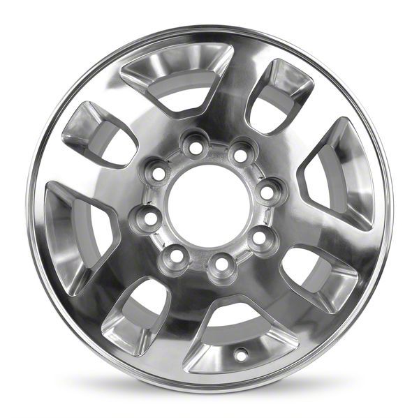 This 18x8 4-V Spoke Replica Polished 8-Lug Wheel is completed in a high-quality polished finish that will create a striking appearance. There's a durable clear coat that protects against driving hazards.