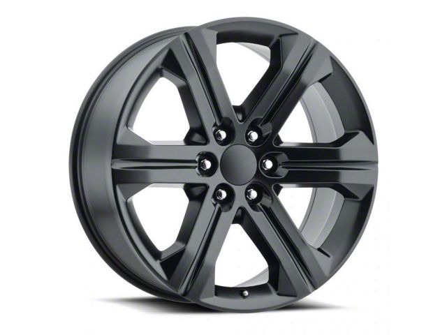 The 22x9 Factory Reproductions 2018 Sierra Replica Gloss Black Milled 6-Lug Wheel is given a gloss black finish to keep the wheel looking as sharp as its design. This wheel's milled steel accents are really where it shines through, and quite literally. It makes the split section of the spokes pop along the faux beadlock.