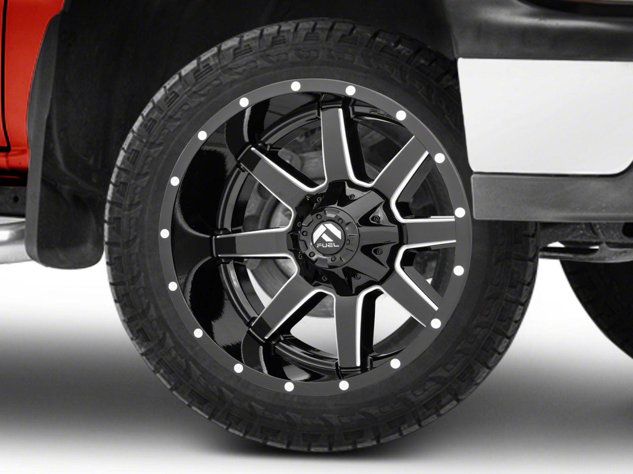 Application. This Fuel Wheels Maverick Gloss Black Milled 6-Lug Wheel; 20x10; -24mm Offset, with a backspace of 4.556 Inch, 115.8mm and bolt pattern of 6 x 139.7mm (6 x 5.5-Inch), ensures optimal alignment and driving stability. It is designed to fit 1999-2006 Silverado 1500 models. Sold individually.