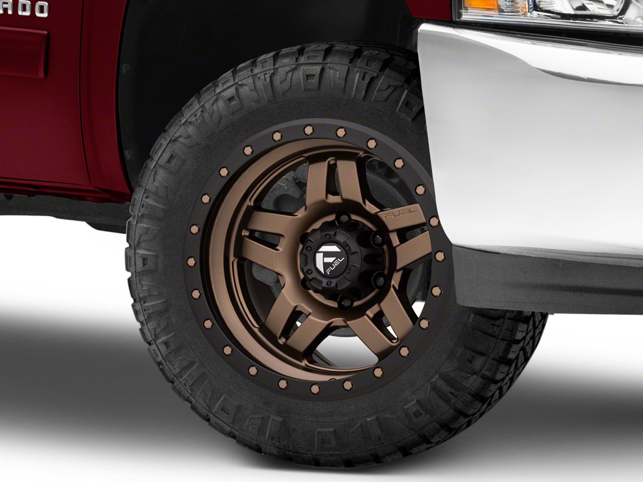 Application. This Fuel Wheels Anza Matte Bronze with Black Ring 6-Lug Wheel; 20x9; 1mm Offset, with a backspace of 5.04 Inch, 128.1mm and bolt pattern of 6 x 139.7mm (6 x 5.5-Inch), ensures proper alignment and stability. It's designed to fit the 2007-2013 Silverado 1500 models, enhancing both the look and the overall driving experience. Sold individually.
