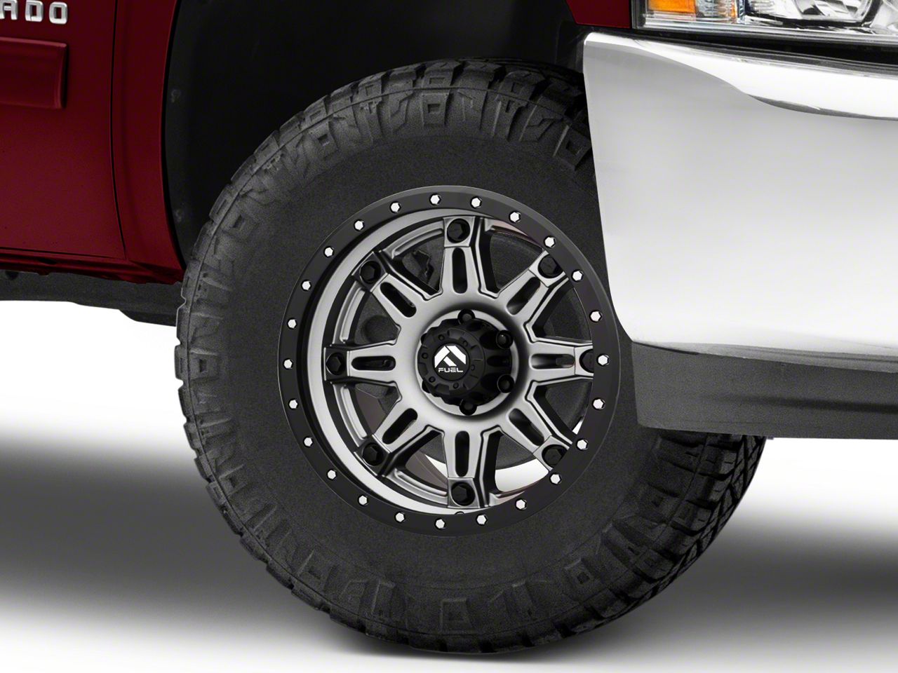 Application. This Fuel Wheels Hostage III Anthracite with Black Ring 6-Lug Wheel; 17x9; 1mm Offset with a backspace of 5.04 Inch, 128.1mm; and bolt pattern of 6 x 139.7mm (6 x 5.5-Inch) contributes to impeccable alignment and driving stability. Designed to fit 2007-2013 Silverado 1500 models, sold individually.