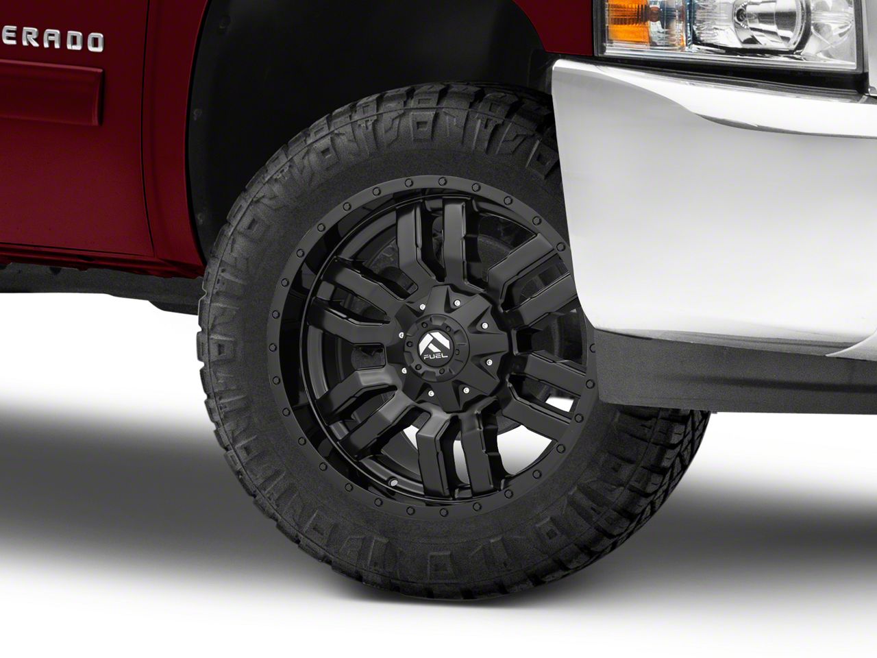 Application. This Fuel Wheels Sledge Matte Black 6-Lug Wheel; 20x9; 1mm Offset with a backspace of 5.04 Inch, 128.1mm and bolt pattern of 6 x 139.7mm (6 x 5.5-Inch) ensures optimal alignment, unparalleled driving stability, and an impeccable fit with your vehicle. It is designed to fit the 2007-2013 Silverado 1500 models. Sold individually.