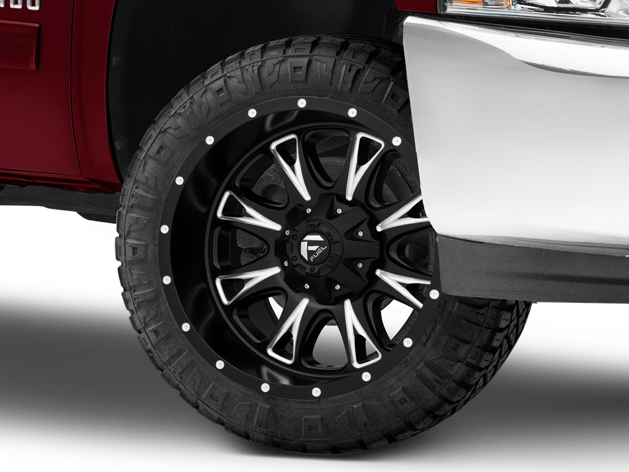 Application. This Fuel Wheels Throttle Matte Black Milled 6-Lug Wheel; 20x10; -24mm Offset, with a backspace of 4.556 Inch, 115.8mm and bolt pattern of 6 x 139.7mm (6 x 5.5-Inch), ensures optimal alignment and driving stability. It is designed to fit 2007-2013 Silverado 1500 models. Sold individually.
