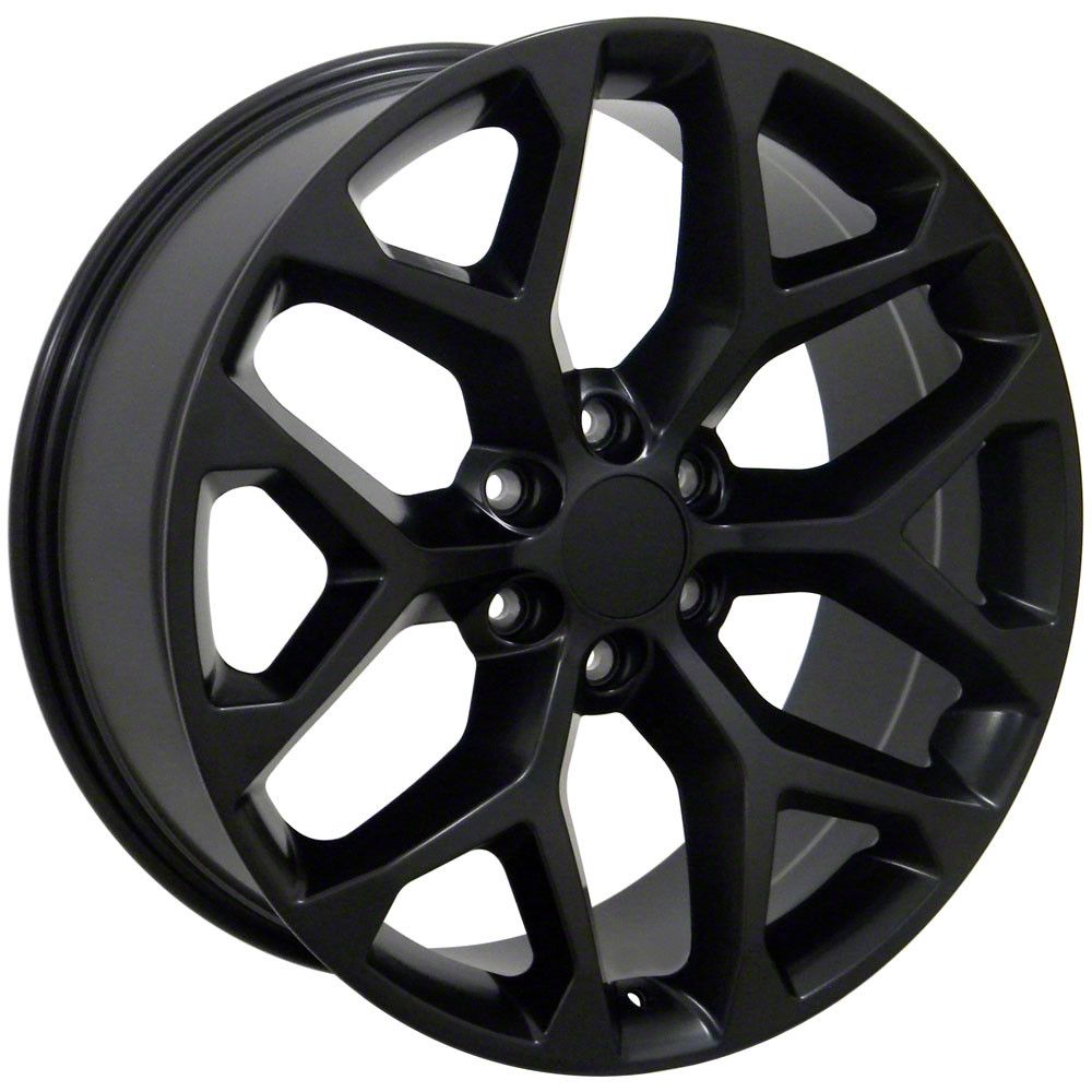 Application. This Snowflake Style Satin Black 6-Lug Wheel; 22x9; 24mm Offset, with a backspace of 5.945 Inch, 151.1mm and bolt pattern of 6 x 139.7mm (6 x 5.5-Inch), is designed to enhance alignment and driving stability, ensuring a perfect fit with the vehicle model. Specifically designed to fit 2014-2018 Silverado 1500 models, this wheel's specifications contribute to a seamless alignment and stable driving experience by ensuring the wheel fits perfectly within the vehicle's wheel well, reducing the risk of rubbing issues and optimizing handling characteristics. Sold individually.