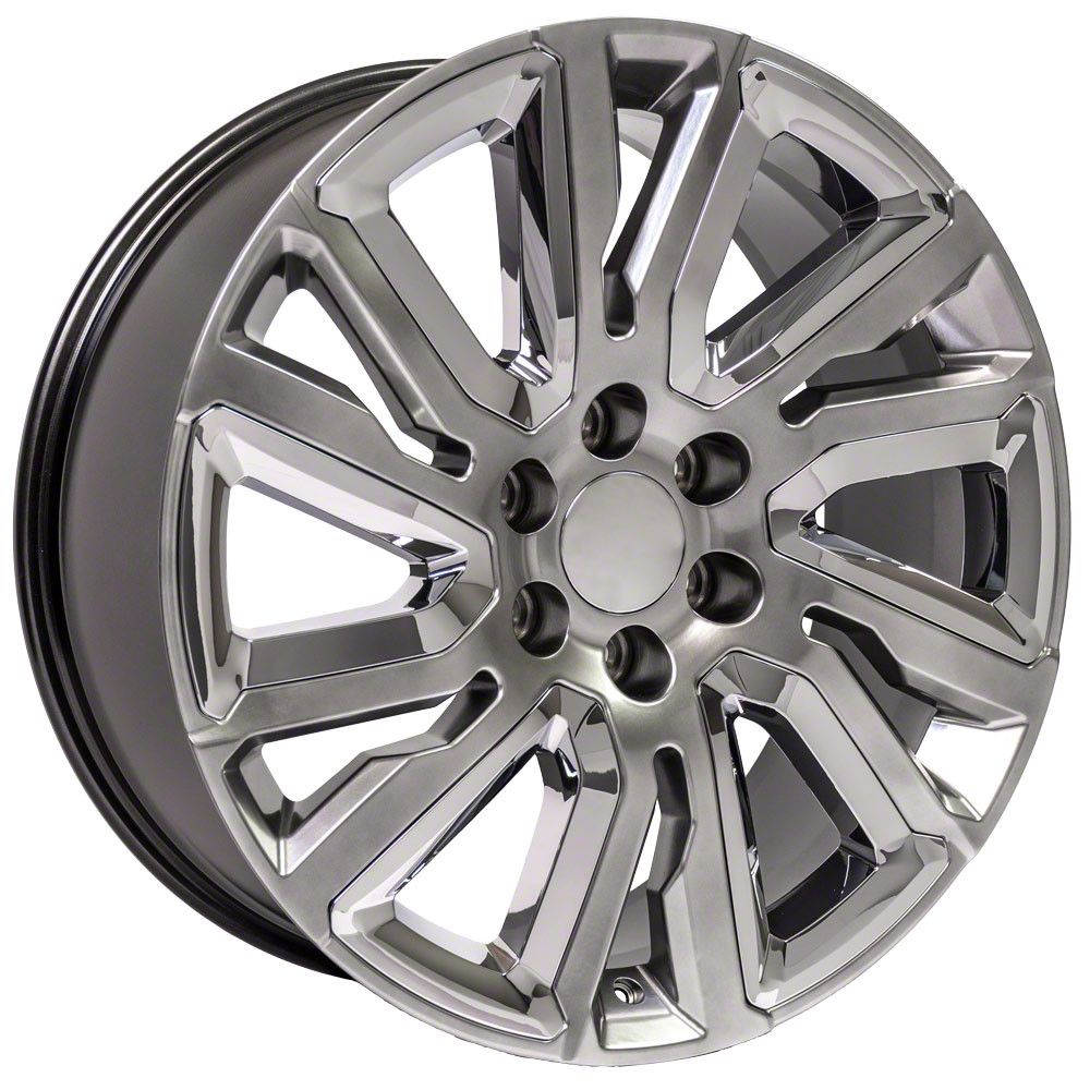 OE Wheels Next Gen Sierra Style Hyper Black with Chrome Insert 6-Lug Wheel; 22x9; 28mm Offset. Enhance your vehicle's look with the OE Wheels Next Gen Sierra Style Hyper Black with Chrome Insert 6-Lug Wheel. This premium wheel adds a touch of elegance and class to your vehicle, complementing its sophisticated aesthetic.