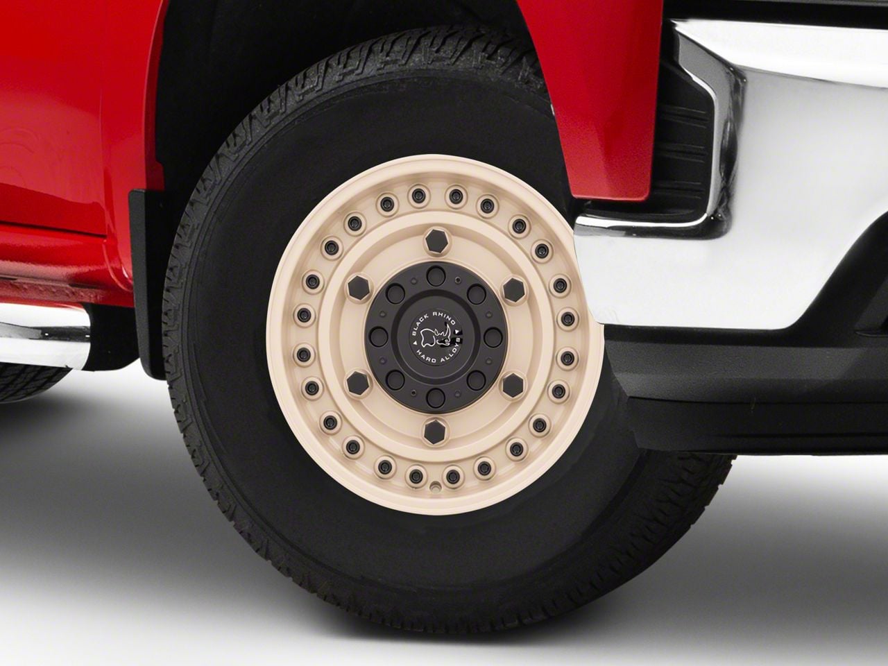 Application. This Black Rhino Armory Desert Sand 6-Lug Wheel; 17x9.5; 6mm Offset with a backspace of 5.487 Inch, 139.4mm and bolt pattern of 6 x 139.7mm (6 x 5.5-Inch) ensures impeccable alignment and driving stability. It's designed to fit the 2019-2026 Silverado 1500 models, sold individually.Shop All Truck Parts And Accessories