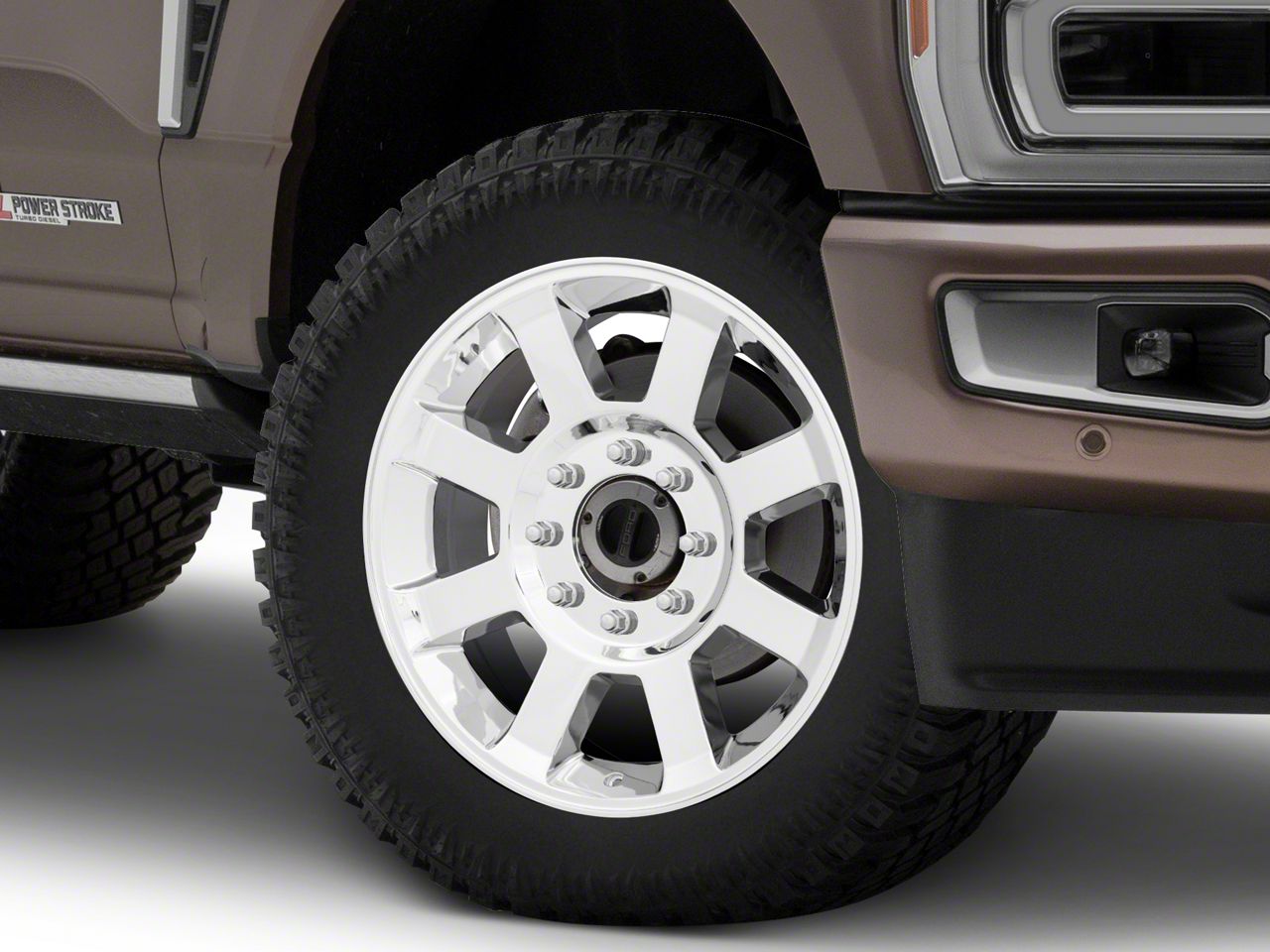 Application. This OE 8-Spoke Style Chrome 8-Lug Wheel; 20x8; 40mm Offset with a backspace of 6.075 Inch, 154.3mm and bolt pattern of 8 x 170mm (8 x 6.69-Inch) ensures impeccable alignment and driving stability. It's designed to fit the 2023-2026 F-250 Super Duty models, sold individually.
