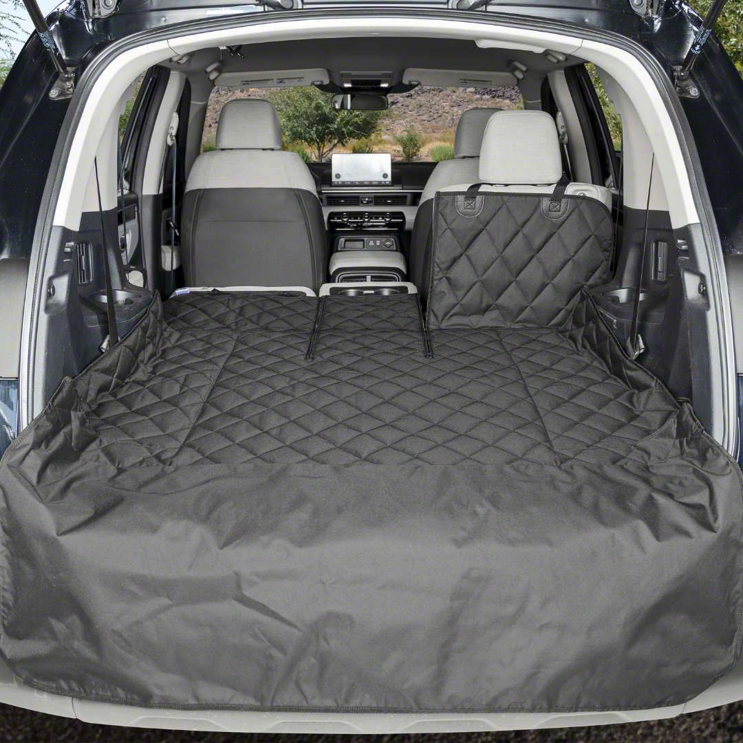 Exclusive Cargo Protection. The 4Knines SUV Cargo Liner for Fold Down Seats; XL is designed to safeguard the cargo area of your vehicle while accommodating fold down seats. This liner helps keep your truck or SUV clean, preventing damage from pets, spills, and debris. It is ideal for pet owners or anyone seeking durable, reliable cargo area protection.