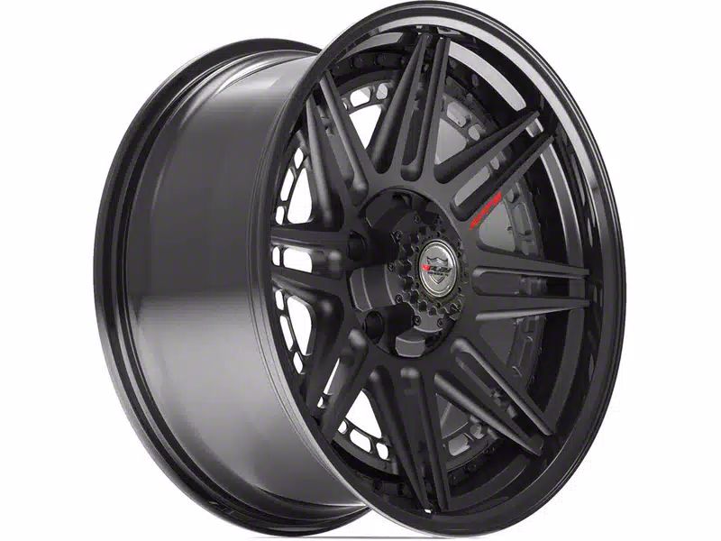 4Play 4PF8 Matte Black Center with Gloss Black Barrel 6-Lug Wheel; 20x9; 0mm Offset. The 4Play 4PF8 Matte Black Center with Gloss Black Barrel 6-Lug Wheel offers a striking balance of style and refinement. Its unique design accentuates the vehicle's aesthetic, while the premium construction underscores its robust nature. This wheel is a perfect choice for those seeking both elegance and a strong visual statement.