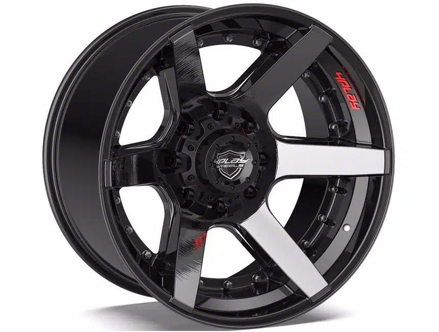 4Play 4P60 Gloss Black with Brushed Face 8-Lug Wheel; 22x10; -24mm Offset enhances your vehicle's aesthetic with its striking design. The wheel's monoblock structure and piano black finish not only add a touch of elegance but also ensure durability and reliability. Perfectly suited for car enthusiasts who value both style and quality.