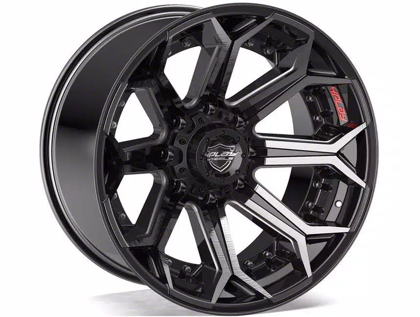 4Play 4P80R Gloss Black with Brushed Face 6-Lug Wheel; 22x12; -44mm Offset exudes a sleek aesthetic appeal, complementing a range of vehicle styles. Its dark stainless finish emanates sophistication, while the brand reputation of 4Play ensures robustness. This wheel seamlessly merges elegance with durability.