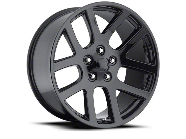 The 22x10 SRT10 Replica Gloss Black 5-Lug Wheel; 22x10; 25.40mm Offset is completed in a high-quality gloss black finish, which will be sure to turn heads. For added durability and appearance, there is a durable clear coat that withstands the rigors of the road.