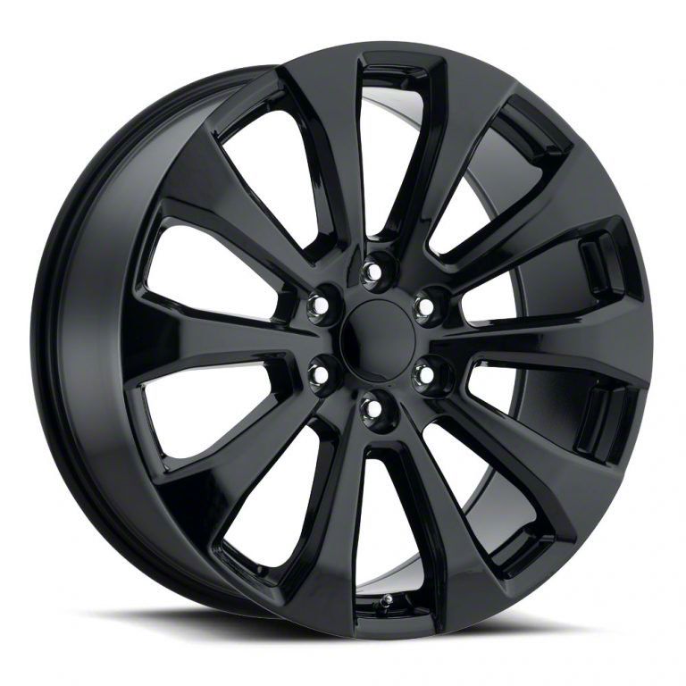 This 22x9 Silverado Split Replica Gloss Black 6-Lug Wheel is completed in a high-quality gloss black finish that stands out immediately. There's a durable clear coat that protects against the hazards of driving.