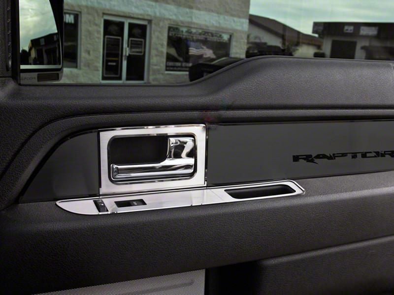 Dress Up the F-150. Dressing up your truck's interior is a great way of making it truly yours and unique. These ACC Brushed Front Door Handle Pull Plates are designed to easily slip on the front door handle pulls. The classic brushed metal finish provides eye-catching accents to the F-150's interior. Furthermore, this set of pull plates is compatible with other ACC door arm trim products.