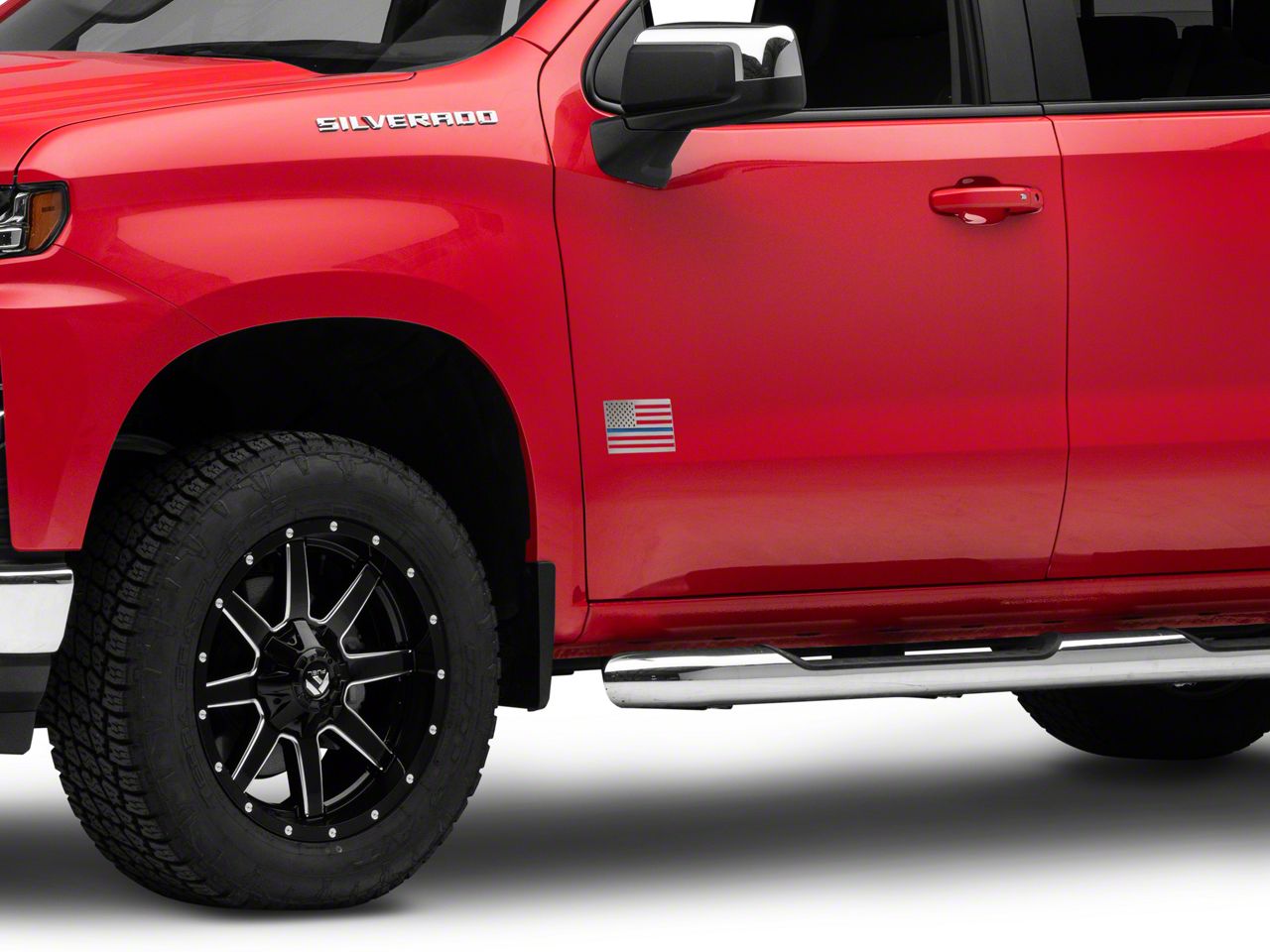 Boosts Truck With American Pride. Give your Chevrolet Silverado 1500 truck a boost of patriotism with the ACC Stainless Steel American Flag Emblem - Brushed w/ Thin Blue Line. Measuring 6 inches by 3.5 inches for prominent coverage, this emblem has a brushed finish to amplify the truck’s grit. Notably, the blue coloring of one of the stripes—just beneath the square containing the stars—is meant to show support to service personnel. You can choose between the one-piece unit for the driver’s side and the two-piece unit for application on both sides.
