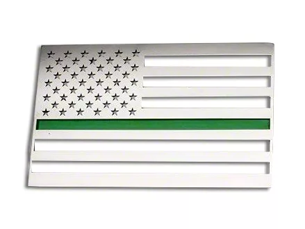 Green Line. Not only does this emblem display your general love for America, but it also boasts a thin green line that further demonstrates your unflinching support of American servicemen and women. From its superior design and thoughtful stripe to its 100% American-made construction, this emblem makes it incredibly easy to support your country in more ways than one. Created from 304 stainless steel for a build that will not rust, tarnish, or fade over time or in challenging environments, this emblem will easily provide that dramatic style upgrade you need with a shiny brushed finish that turns heads wherever you go.