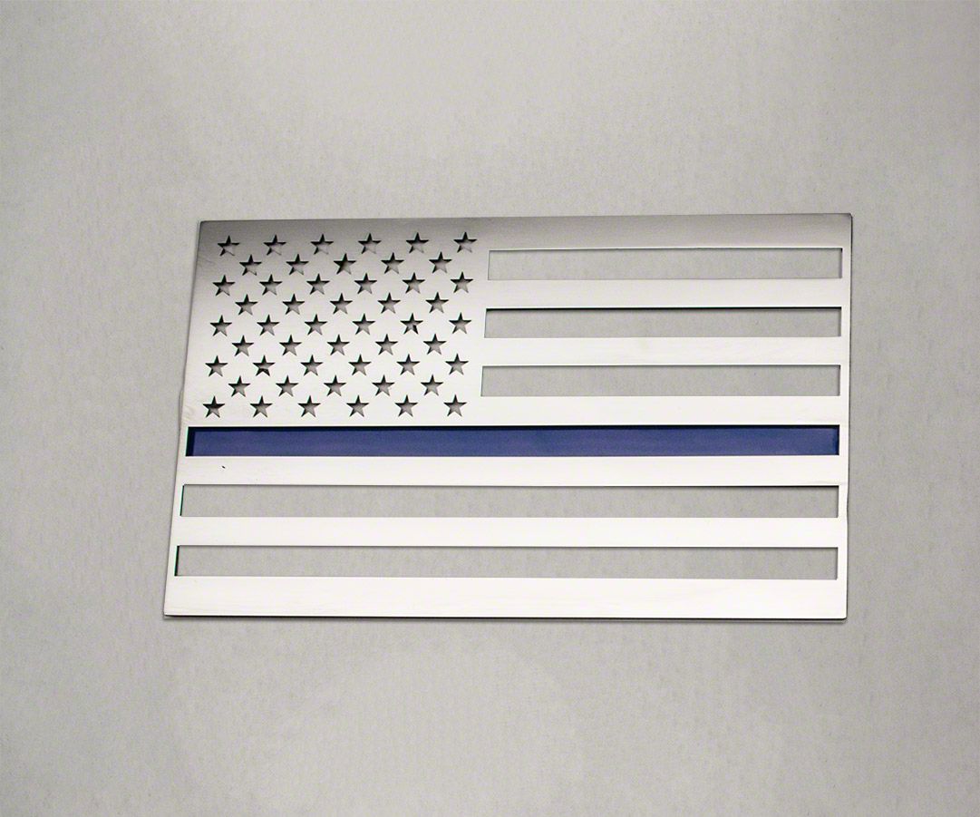 Show Your American Pride. Often adding accessories to your rig is about stylizing it to your unique taste or is done to add a certain function. Sometimes, though, the accessories you choose are intended to make a statement. That’s the case with this ACC Stainless Steel American Flag Emblem - Polished w/ Thin Blue Line. This 6x3.5” emblem declares that you are proud to be an American. Polished for a sleek look, it features a thin blue line to show support and gratitude to service people as well.