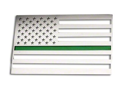 Application. The ACC Stainless Steel American Flag Emblem - Polished with Thin Green Line fits all 1997–2026 Ford F-150 models. Shipped in a polished finish, it is sold individually.