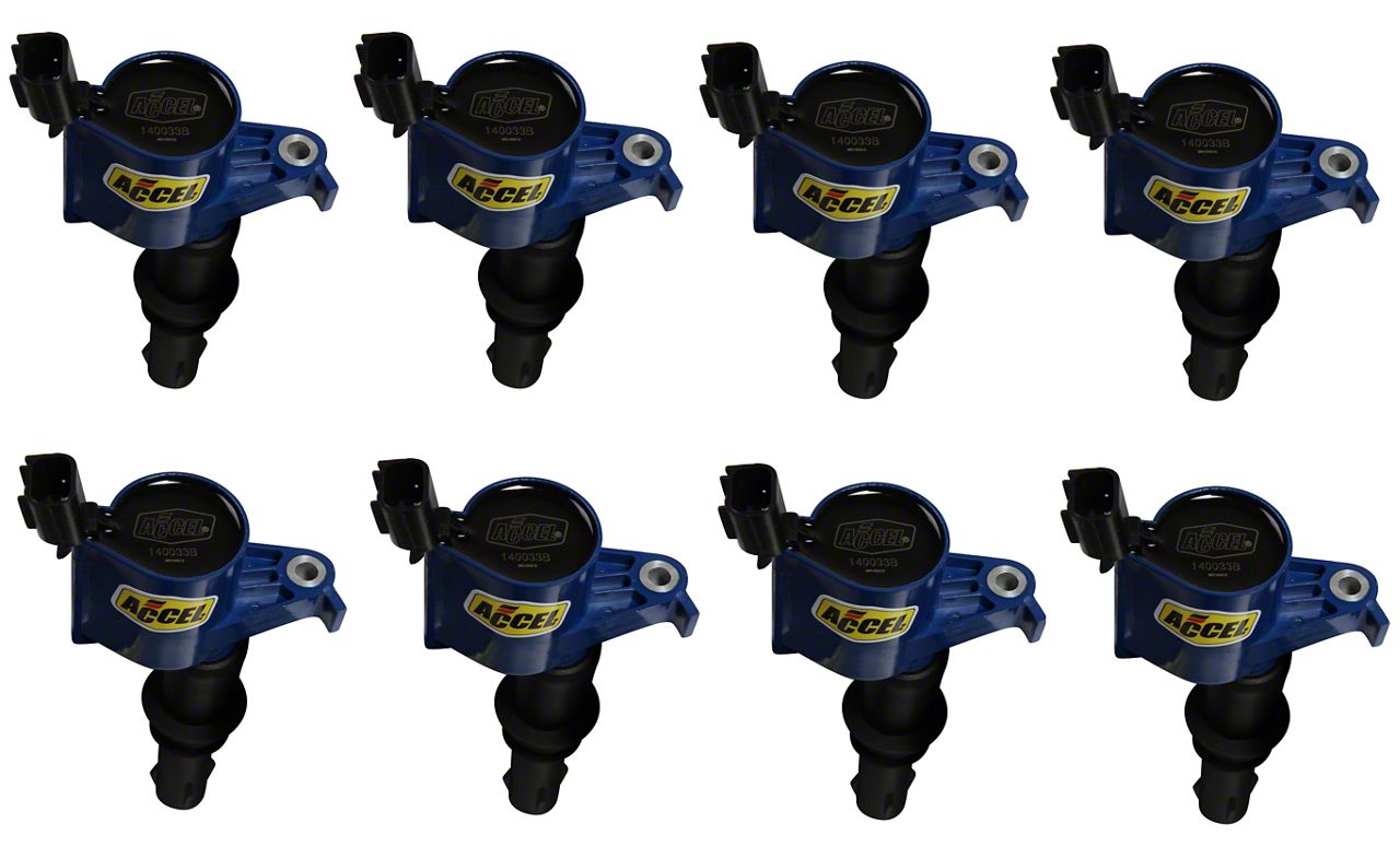 Application. The Accel SuperCoil Ignition Coils; Blue; 8-Pack fits 2005-Early 2008 5.4L, 6.8L F-250 Super Duty Models.