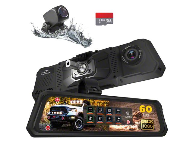High-Tech Mirror Dash Cam. The Acumen The Legend Mirror Dash Cam provides a comprehensive surveillance solution for your vehicle, featuring dual Full HD cameras with ultra-wide 140-degree view angles. With built-in WiFi and Bluetooth, it is compatible with the AcumenCam app for real-time monitoring and control, making it an ideal upgrade for both safety and convenience.