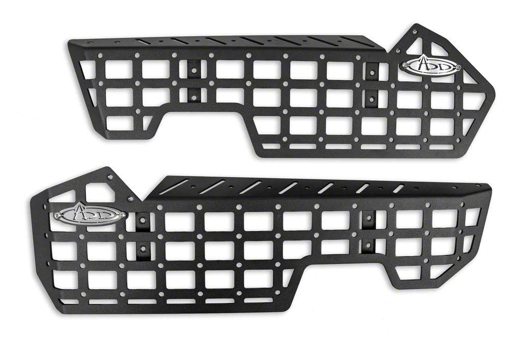 Maximized Storage and Efficiency. Transform the interior of your F-150 with Addictive Desert Designs Center Console MOLLE Panel; Side Panels. These custom side panels offer a practical and tactical approach to organizing your gear, making them perfect for off-road enthusiasts and professionals alike.