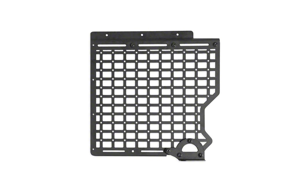 Construction and Appearance. Crafted from CNC-cut steel and finished in a textured black powder coat, the MOLLE panel is built to endure harsh trail environments and resist corrosion. The precision laser-cut layout ensures exact fitment and maximizes versatility for attaching a wide range of MOLLE-compatible gear without compromising bed space.