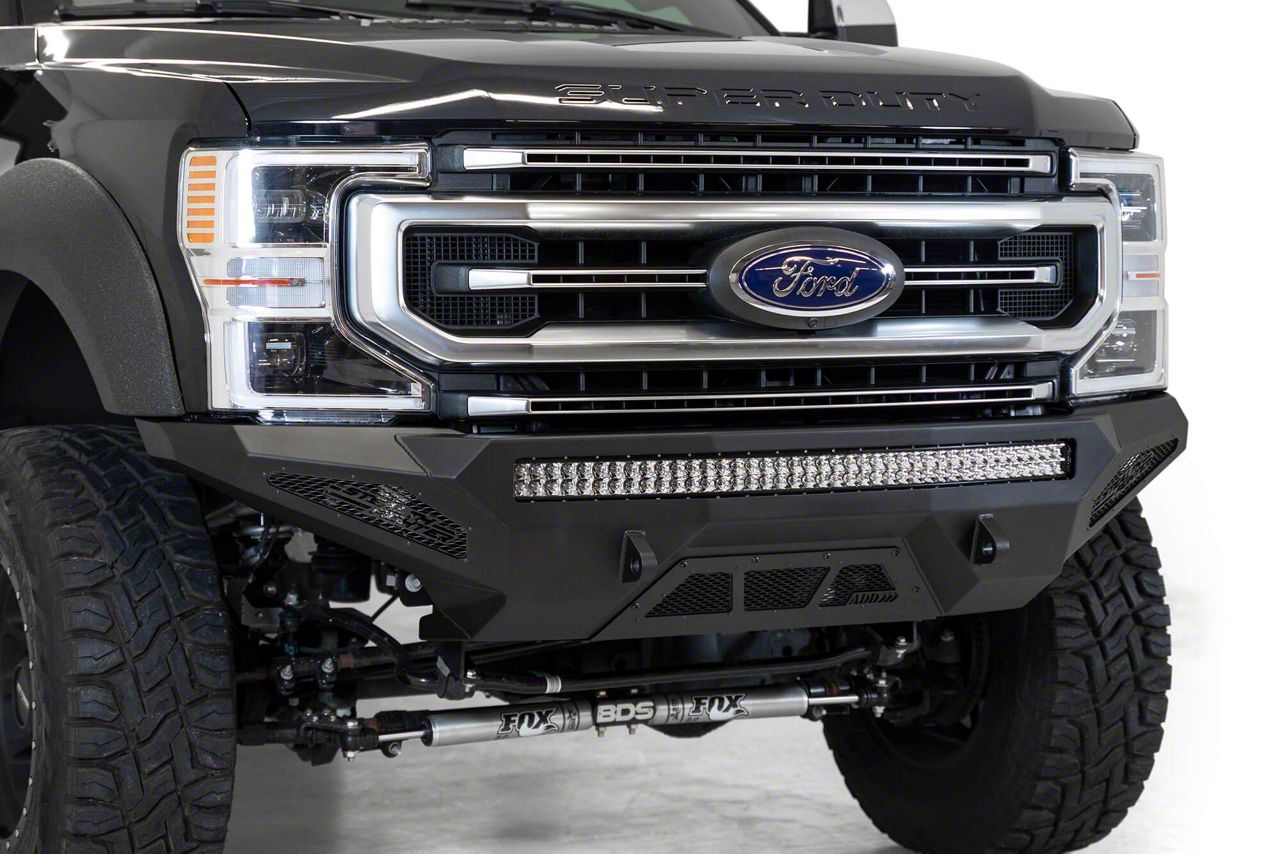Application. The Addictive Desert Designs Stealth Fighter Front Bumper is made to fit all 2020-2022 F-350 Super Duty models.