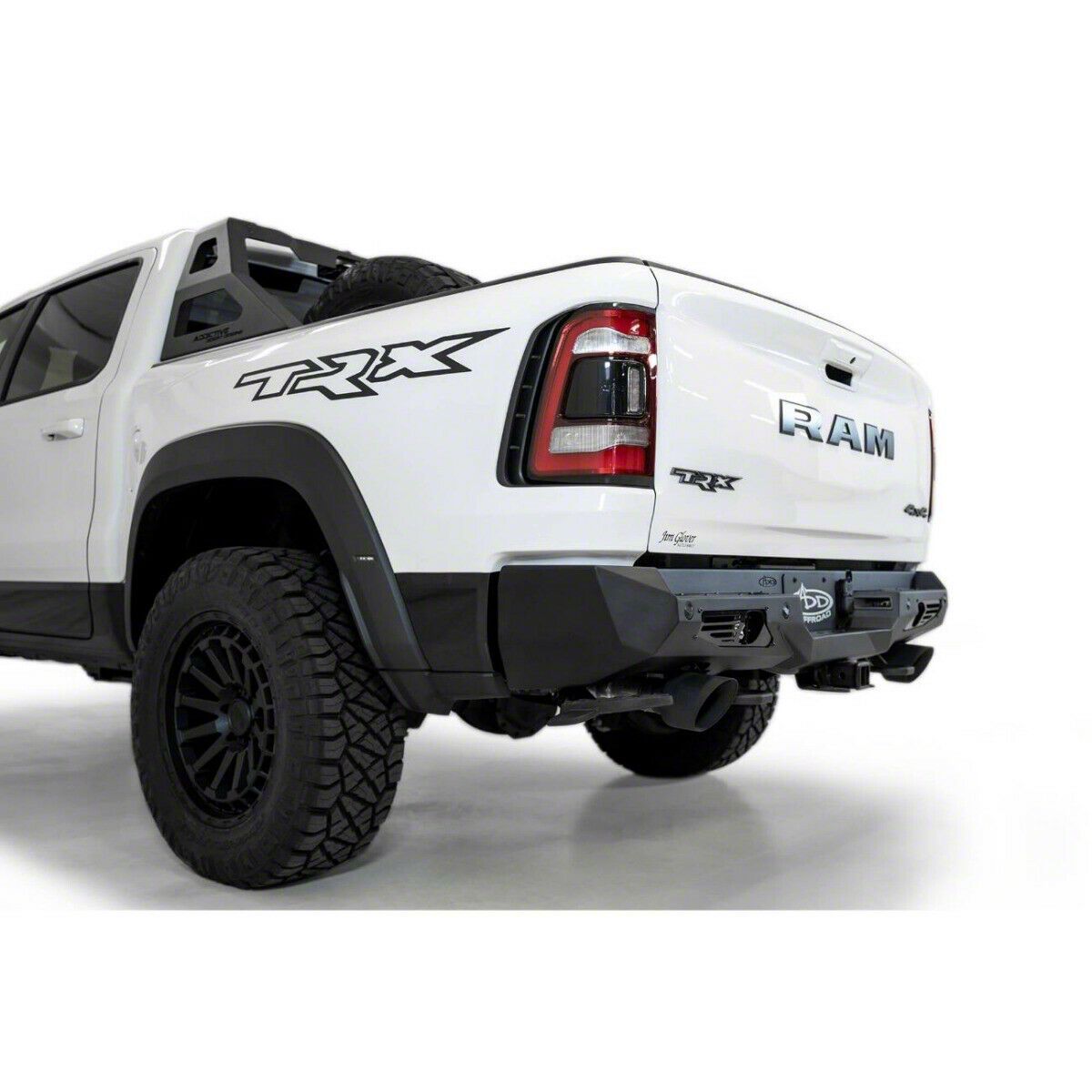 Application. This Addictive Desert Designs Bomber Rear Bumper fits all 2021 to 2025 RAM 1500 TRX models.