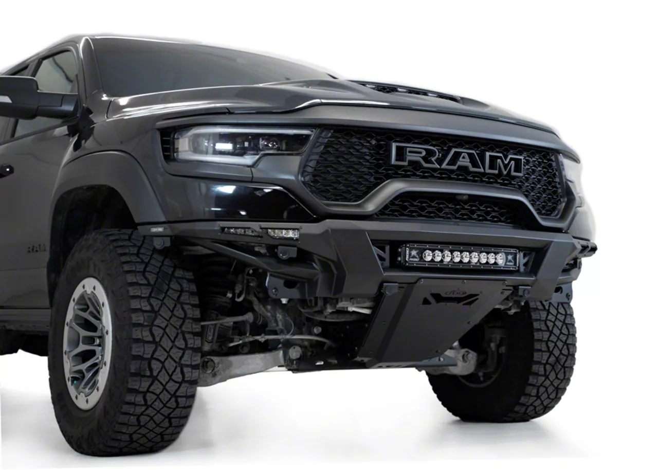 Application. This Addictive Desert Designs Phantom Front Bumper fits 2021-2025 RAM 1500 TRX models.