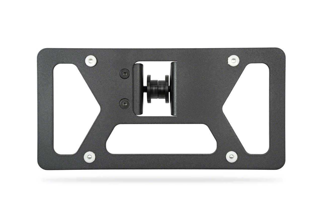 Our Clevis D-Ring Mounted Front License Plate Bracket was designed to easily mount a front license plate bracket on an off-road bumper. It is also easily removable for optimal ground clearance when going off-road. If left installed while off-road, it will swivel if you strike an obstacle to help prevent damaging the mount. It is adjustable for universal clevis mount fitment, and can also be configured for different heights. The mount is finished in a durable 2-stage hammer-black powder coat, and is made in the USA.