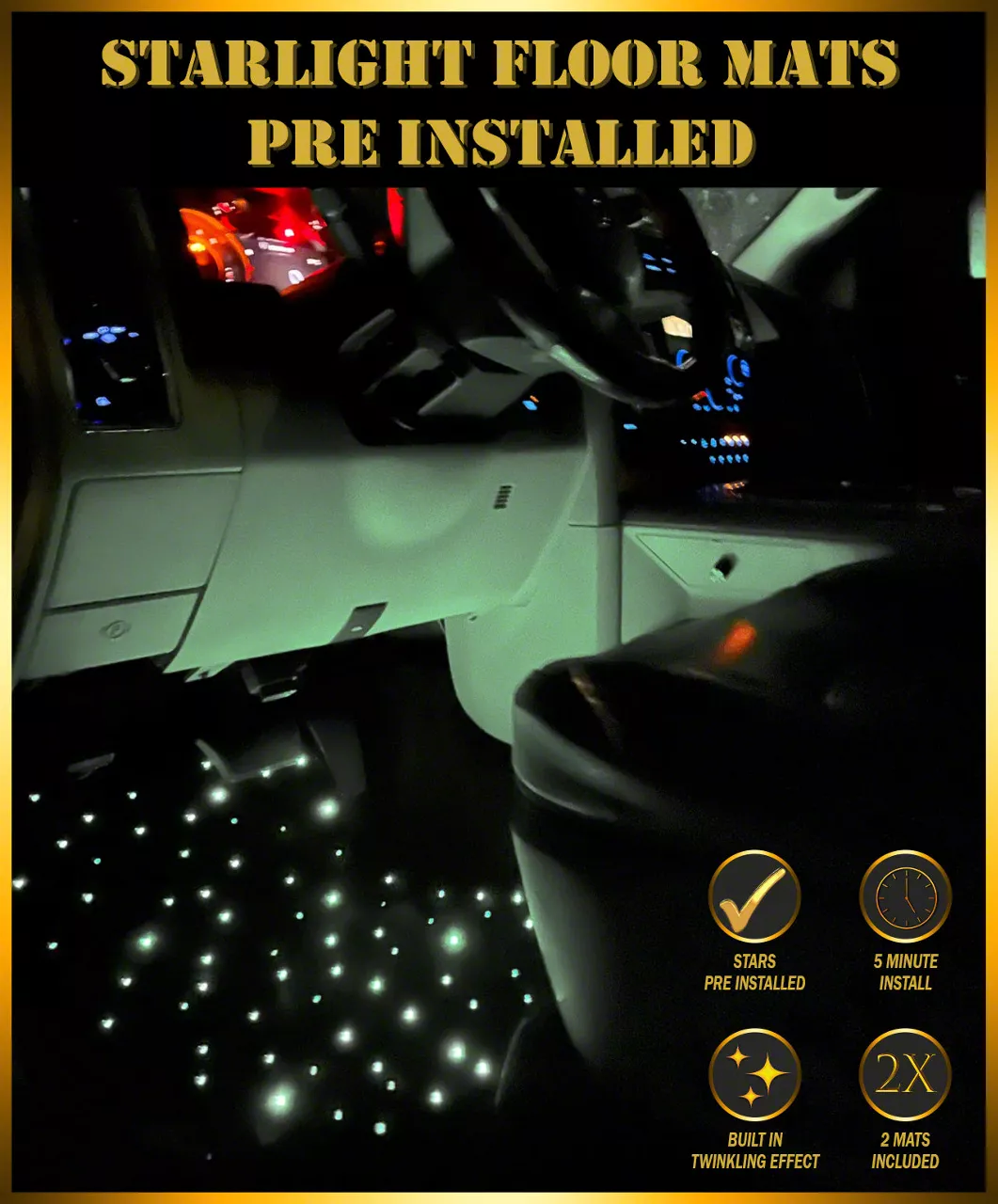 Stylish Starlight Floor Mats. The Adrenaline Offroad Starlight Floor Mats bring a unique and stylish touch to your vehicle's interior with their built-in twinkling light effect. Controlled via mobile app or RF remote, these mats provide a customizable lighting experience with multi-color options and pure white light output.