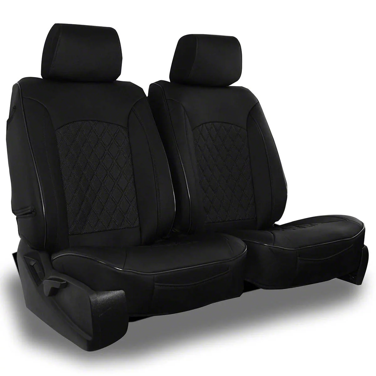 Upgrade Your F-150’s Interior with Aegis Leatherette Bucket Seat Covers. The Aegis Cover Leatherette Low Back Bucket Seat Covers offer a luxurious upgrade for your 2000-2026 Ford F-150’s interior. Featuring a sleek black finish with black piping and a suede diamond insert, these seat covers provide a modern and stylish look while protecting your seats from spills, dirt, and wear. Perfect for daily driving or work trucks, they ensure your interior stays clean and comfortable.
