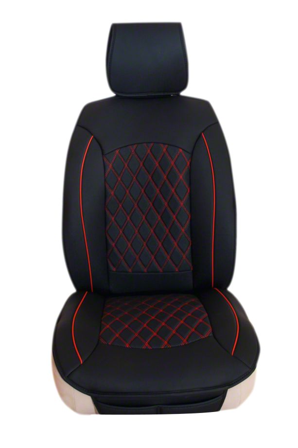 Stylish and Durable Seat Protection. The Aegis Cover Bucket Seat Cover enhances the interior of your 2011-2026 Dodge RAM 1500 while protecting the stock upholstery. Designed with a matte black finish and racing red piping diamond insert design, this seat cover adds a sporty and luxurious touch to your vehicle’s interior.