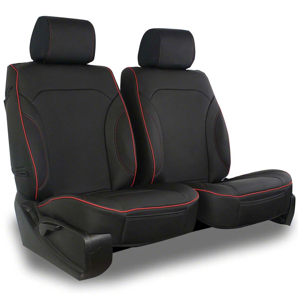 Construction and Appearance. Crafted from premium-quality black leatherette fabric, the Aegis covers feature a plain insert with red piping for a sophisticated touch. The 3D design provides added comfort and style, while a Velcro airbag opening enhances safety. Built to last, these covers replicate original factory specifications for a seamless, high-end look.