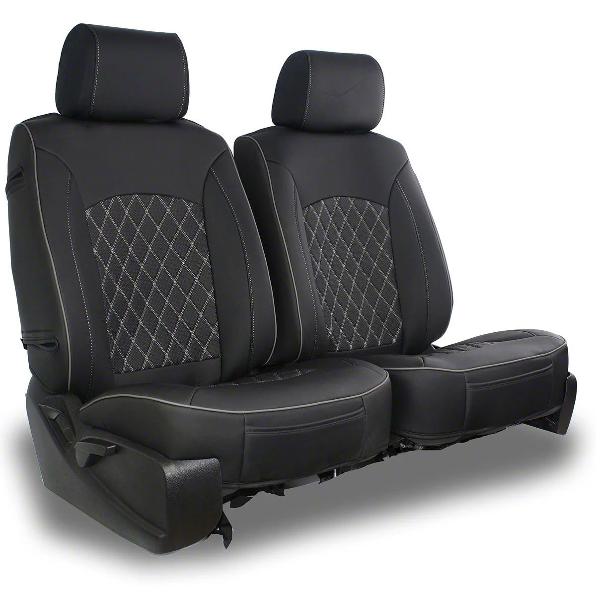 Aegis Cover Leatherette Low Back Bucket Seat Covers with Suede Diamond Insert; Black/Silver Piping (00-10 RAM 1500 w/ Front Bucket Seats)Find parts that fit my vehicle