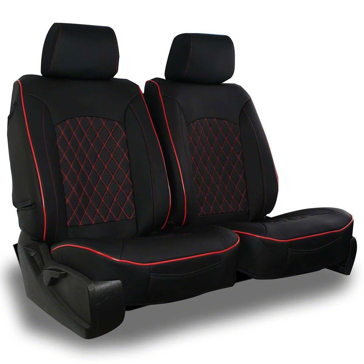 Bold and Eye-Catching. The Aegis Cover Leatherette Low Back Bucket Seat Covers' black/red piping creates a striking contrast that adds visual interest and enhances the overall appearance of these seat covers. This color combination is both stylish and sporty, making it a great choice for any vehicle.