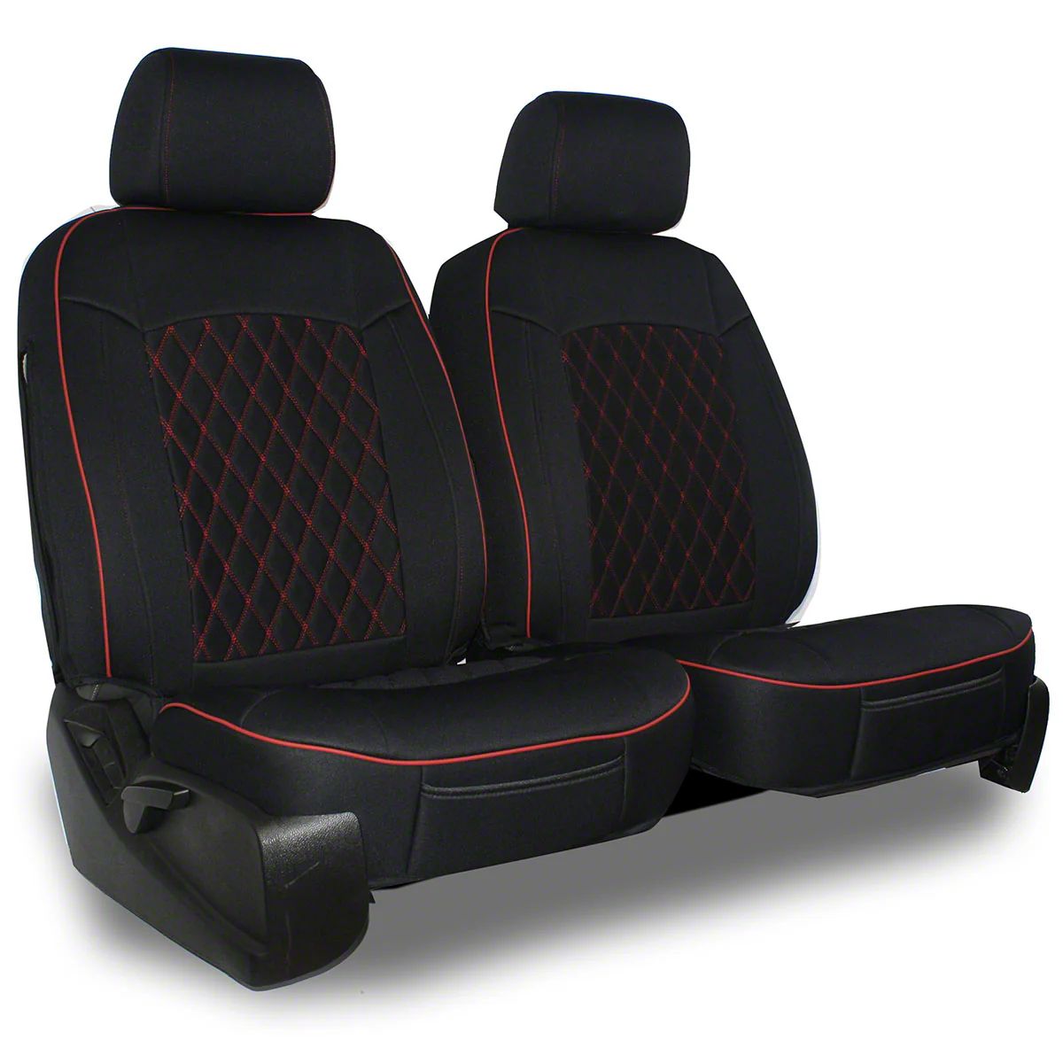 Durable Neoprene Construction. Crafted from high-quality neoprene, these Aegis Cover Neoprene Low Back Bucket Seat Covers with Diamond Insert; Black/Red provide excellent resistance to wear, water, and spills. The tough yet flexible material ensures lasting durability while keeping your seats protected from daily use and harsh conditions.