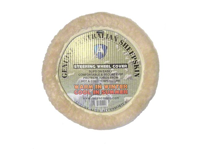 Luxurious Comfort and Style. The Aegis Cover Sheepskin Steering Wheel Cover provides a luxurious upgrade for your vehicle's steering wheel, offering the soft, warm feel of genuine sheepskin. Its sand color adds a stylish and unique look, making it perfect for enhancing your vehicle's interior.