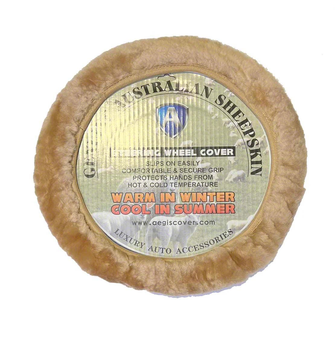 Luxurious Comfort and Style. The Aegis Cover Sheepskin Steering Wheel Cover provides a luxurious upgrade for your vehicle's steering wheel, offering the soft, warm feel of genuine sheepskin. Its gold color adds a stylish and unique look, making it perfect for enhancing your vehicle's interior.