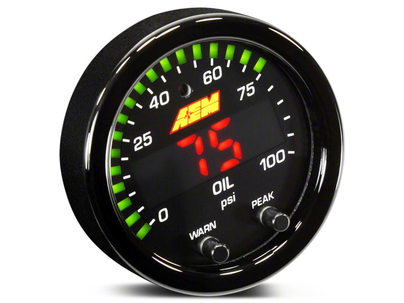 Unique Programmable Features. This Oil Pressure Gauge has a programmable peak coupled with the AEMnet CANbus. It can be hooked with the Engine Management System (EMS) for easier tracking of the engine performance. And here's the best part — it has a whopping 87% larger display than the competitors.