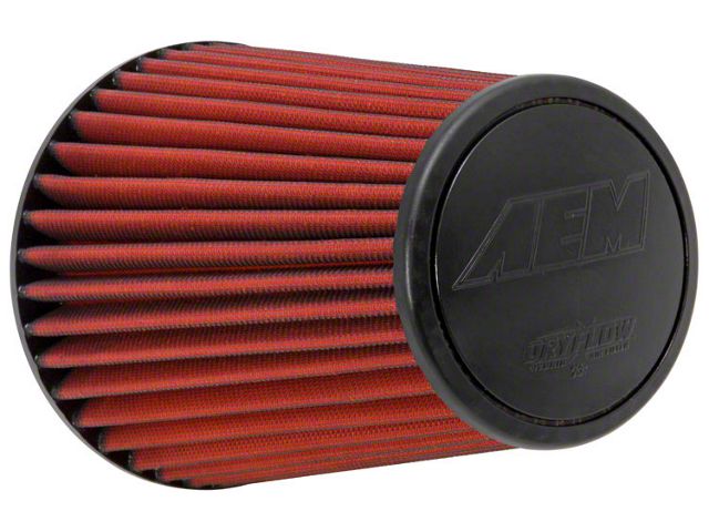 Application. This AEM Induction DryFlow Air Filter (6-Inch Inlet and 9.125-Inch Length) fits universally and requires minimal adjustments.